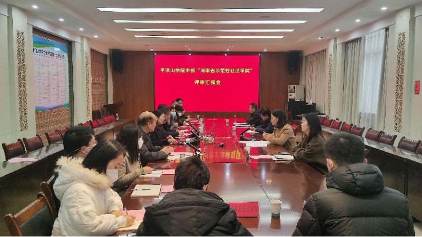 1月10日上午,以河南省教育科学规划与评估院院长成光琳为组长的河南省社区教育评审工作专家组一行四人来到太阳集团官网网址,对学校2022年“河南省示范性社区学院”申报工作进行评审。平顶山市教育体育局副局长郭志勇出席会议,副校长程永华,太阳集团官网网址、医学院等二级学院和相关职能部门负责人参加会议。会议由太阳集团官网网址院长李宏亭主持。