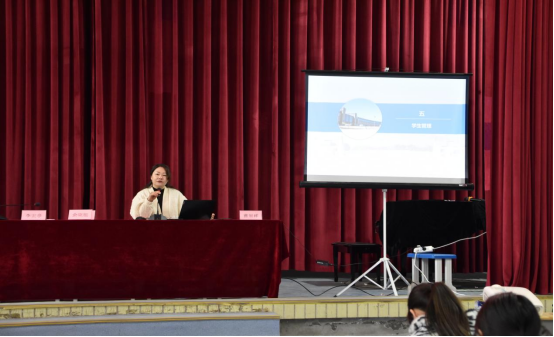 解疑释惑纾生忧,深入指导明方向。教务科科长郭栋围绕着“教务工作、教学过程、毕业、学位”四个方面,以幽默风趣的语言向2024级新生详细地介绍了学籍注册、转专业、网上学习和考试时间安排、学位的申请等流程。这对处在工学矛盾困境之间的成教生来说,无疑给他们指明了学习的方向。学生科科长余晓旭主要在新生报到工作流程、缴费标准与流程、校外教学点的联系方式、毕业生图像信息采集、毕业生资格审查表填写、毕业生档案等几个方面,以图文并茂的形式生动地解答了新生的疑惑。郭科长与余科长的讲话,重点突出,互为补充,赢得了学生阵阵的掌声。