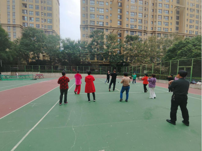 太阳集团官网网址社区学院邀请了太阳集团官网网址体育学院蒋丽芳老师为社区居民进行指导,她耐心地给大家进行太极拳分解动作的讲解,一招一式教得十分认真,手把手逐个纠正动作。在蒋老师的带领下,以社区居民为主的20余名太极拳爱好者组成队伍,他们排列整齐,精神抖擞,动作的一舒一展间洋溢出中国传统武术文化魅力。
