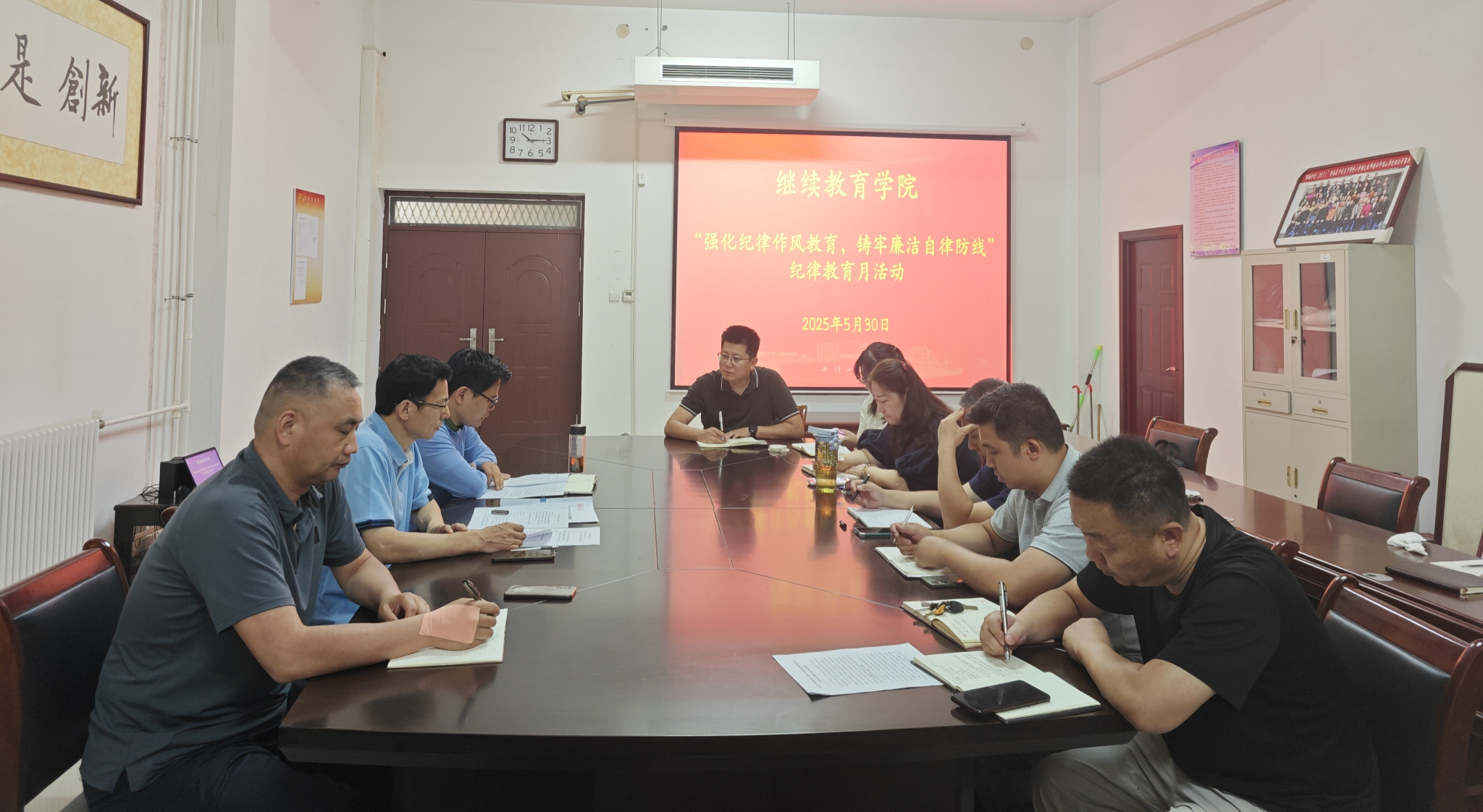 为进一步强化党员干部纪律意识,筑牢廉洁防线,2025年5月30日上午,太阳集团官网网址召开党总支理论学习中心组(扩大)会议,专题学习《中国共产党纪律处分条例》与《中国共产党廉洁自律准则》。会议由太阳集团官网网址党总支书记王小宁主持,科级以上干部参会。
