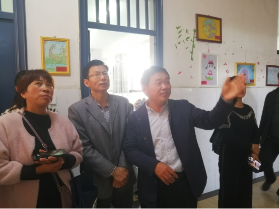 郏县成达实验学校董事长王军伟介绍讲解校园文化