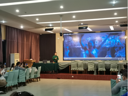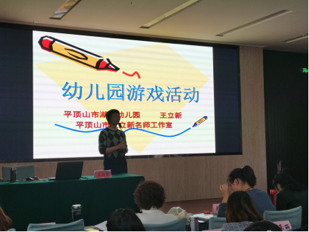 接着,伴随着第八组组长的介绍,王立新园长开始了今天的讲座《幼儿园游戏活动的组织与实施》。王立新老师是平顶山市湖光幼儿园业务副园长,“平顶山市王立新学前教育名师工作室”主持人,荣获河南省教育专家、河南省学术技术带头人、河南省名师、平顶山市首届领雁人才、平顶山市教育先进工作者、平顶山市教育专家、平顶山市第三届名师、平顶山市学术和技术带头人称号。