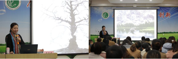 接着,史教授深入浅出地阐述了八种主要开讲方式,即“语言提问,竞赛、活动和游戏,动漫视频,舞蹈教学,心理图片,故事和小品”,并结合不同的小游戏,为课堂营造了活跃的氛围,也希望学员能在以后的教学中学以致用。除此之外,史教授还通过播放短视频,指出学会情绪控制的积极作用,鼓励学员立足于学生,换位思考,更能看出自身不足,提高自己的教学质量。