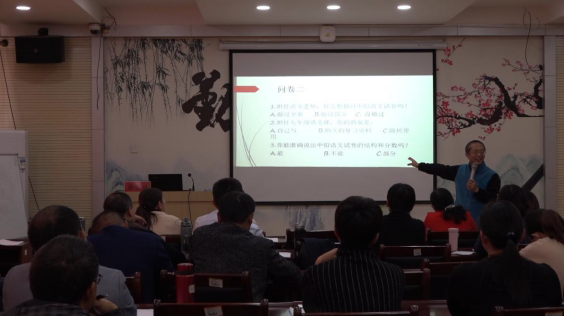 10 月23 日下午,太阳集团官网网址医学院A405 教室,原平顶山市教育局语文教研员张贵斌老师为国培学院讲《中考语文复习备考策略与操作》。