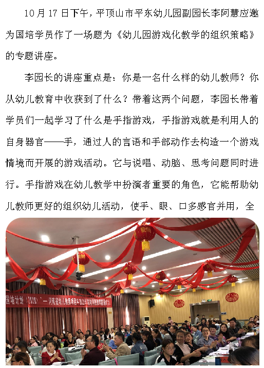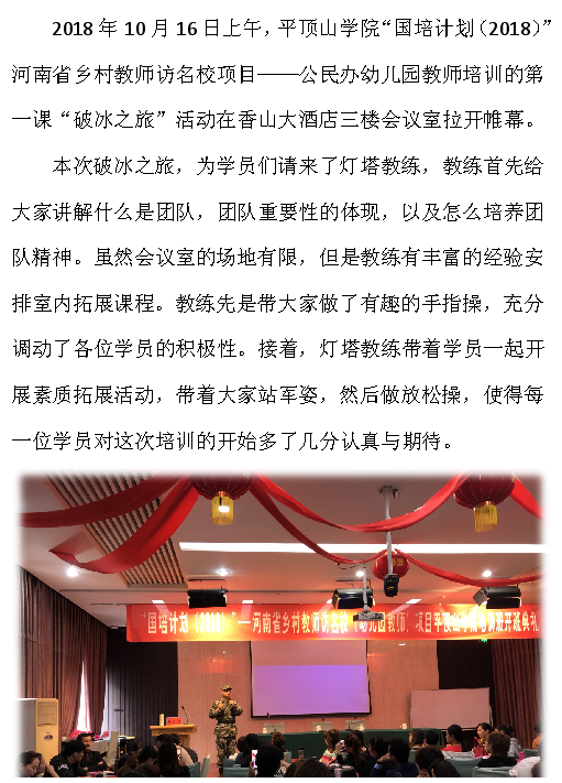 “国培计划(2018)”——河南省乡村公民办幼儿园教师培训班简报
