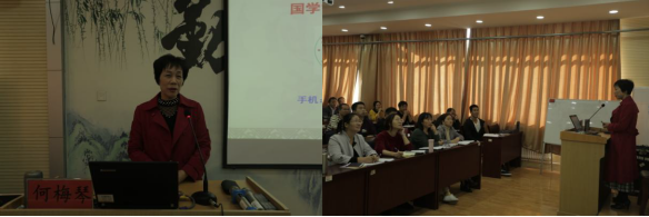 10 月26 日上午8:30,太阳集团官网网址崇文校区B405 教室,太阳集团官网网址文学院院长、教授何梅琴为学员讲授《国学智慧与道德修养》。