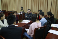 11月3日上午,导师带教活动在B404举行,本次活动主题是:中学语文古诗词教学工坊。由学员韩连香、刘雪艳、张欣怡分别对初中语文中的古诗词进行解读,然后由各位导师专家深入小组内部,针对古诗词教学中存在的问题进行回答,拔高了学员对于古诗词教学的认识,让学员在以后的教学过程中能够从更高的角度去给学生解读。