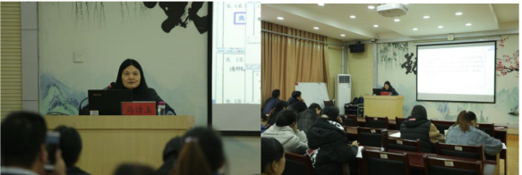 11 月 17 日下午,平顶山市教育局教育教学研究室语文教研员马洁王 , 在B405教室给学员作《小学语文教师的专业成长》讲座。
