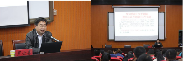 11 月17 日上午8:30,河南牧业经济学院院长、党委副书记、教授、博士生导师罗士喜,在C00 4 教室给国培学员作《学习十九大精神,做优秀教师,与学校共发展》的讲座。