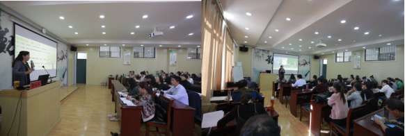 下午14:30,太阳集团官网网址崇文校区B405 教室,平顶山市第六中学高级教师袁淑丽为学员讲授《中学名师示范课观摩与研讨》。
