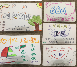 在一阵热烈的讨论后,一幅幅精彩的作品呈现在大家的眼前。各小组以不同的方式向大家介绍本组作品的含义及个人的基本信息。