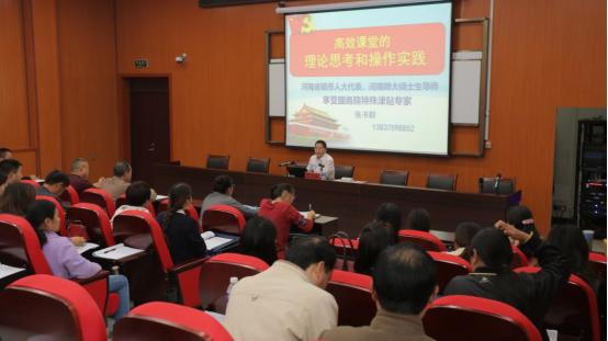 17 日下午14:30—17:30,河南省辖市人大代表、河南师大硕士生导师、享受国务院特殊津贴专家张书群,在C004 教室为向全体培训学员讲授《高效课堂的理论思考和操作实践》。