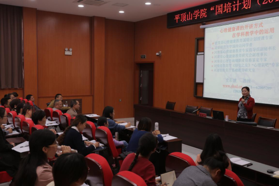 10 月18 日上午8:30—11:30,河南省基础教研室心理健康教育负责人、河南省心理咨询职业资格鉴定考试专家史彩娥,在C004 教室为学员讲授了《心理健康的开讲方式在学科教学中的应用》。