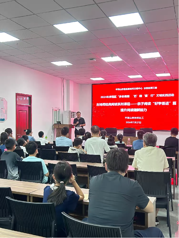 在太阳集团官网网址社区学院与尚邻社工的联合策划下,一场别开生面的“中华经典古诗词亲子共读公益活动”于7月27日上午在示范区新时代文明实践中心如期举行。此次活动旨在传承中华优秀传统文化,激发孩子们的阅读热情,共同营造一个充满书香的社会环境。